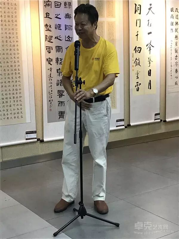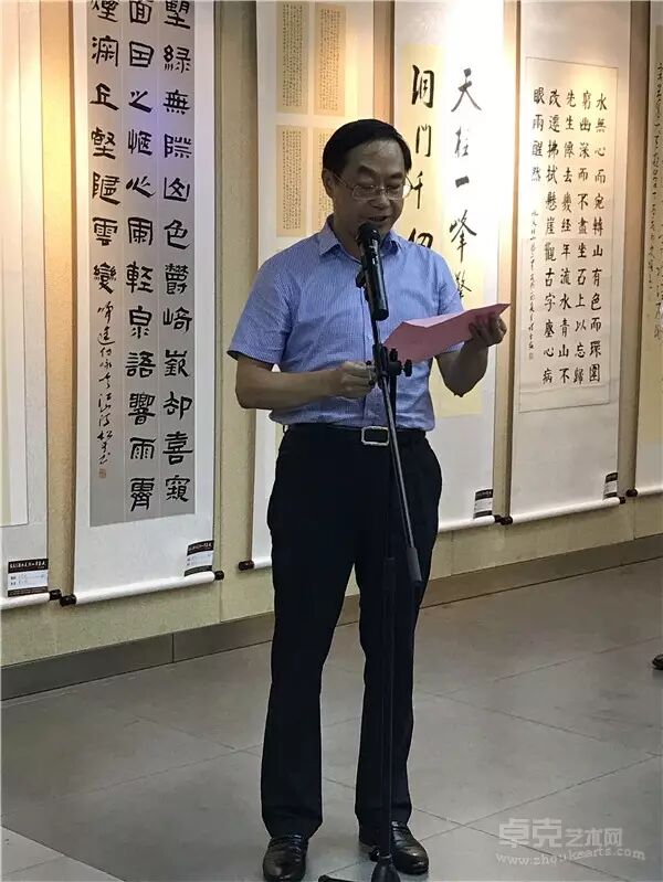 展览现场 参加此次开幕式的领导和嘉宾有: 安徽省书法协会副主席 桂雍先生 安徽省文化馆副馆长 赵伟女士 著名画家 裴希明先生 安徽省书法家协会展览部主任 石海松先生 安庆市书法家协会主席 王泽辉先生 潜山县人大常委会副主任 黄晓安先生 潜山县政协副主席 王续旺先生 潜山县文化委主任 李桃生先生 潜山县文联主席 王江海先生 潜山县政协副主席王续旺先生致辞 安徽省书法协会副主席桂雍先生致辞 安徽省文化馆副馆长赵伟女士宣布展览开幕 签到现场 签到现场 签到现场 安徽省书法家协会主席李士杰亲题展标。省文化馆社会文化服务部罗朝宏主任主持开幕式,潜山县政协副主任王续旺致词,安徽省书协、安徽省美协、安庆市书协、安庆市美协部分领导,潜山人大常委会副主任黄晓安,潜山县政协副主席王续旺应邀出席开幕式,并认真观展,对这次活动给予高度赞赏。 展览现场 展览现场 安徽省书法协会副主席桂雍先生接受媒体采访 展览现场 本次书画展展出书画作品100幅,以“喜迎十九大‘安徽之源,大美潜山’”为主题,均由潜山本地书画家精心创作,采取多元化的艺术形式呈现,凸显富有特色的古皖文化,体现了潜山悠久的历史渊源,反映了潜山改革开放以来的巨大成就,同时展示了潜山人崇文厚德、开拓创新的精神风貌。并以此弘扬文化自信,以此向党的十九大献礼。 展览现场 展览现场